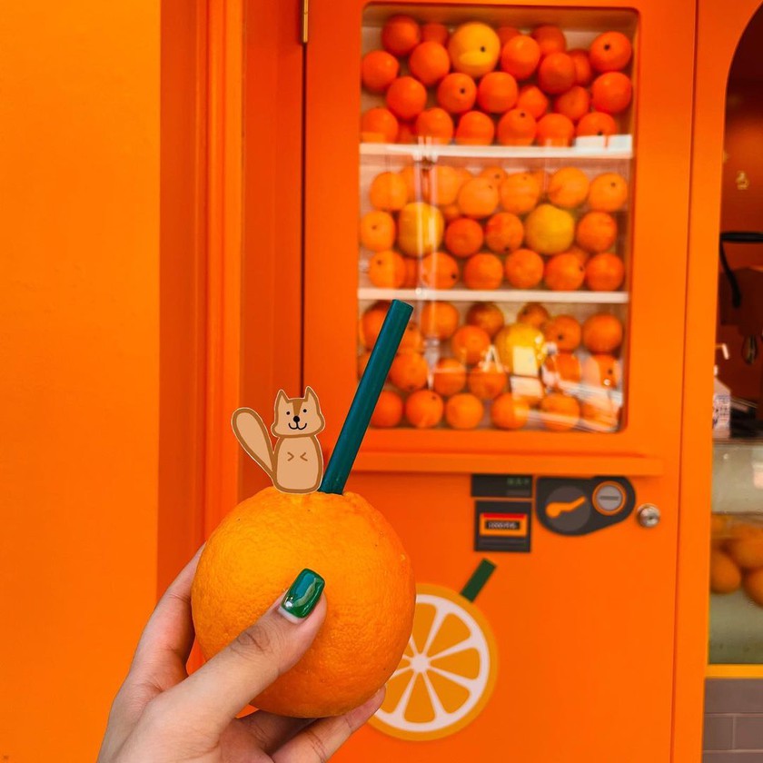 果物にそのままストローを差して飲むスタイルなので、爽やかな香りと甘みがダイレクトに口に広がります🧡