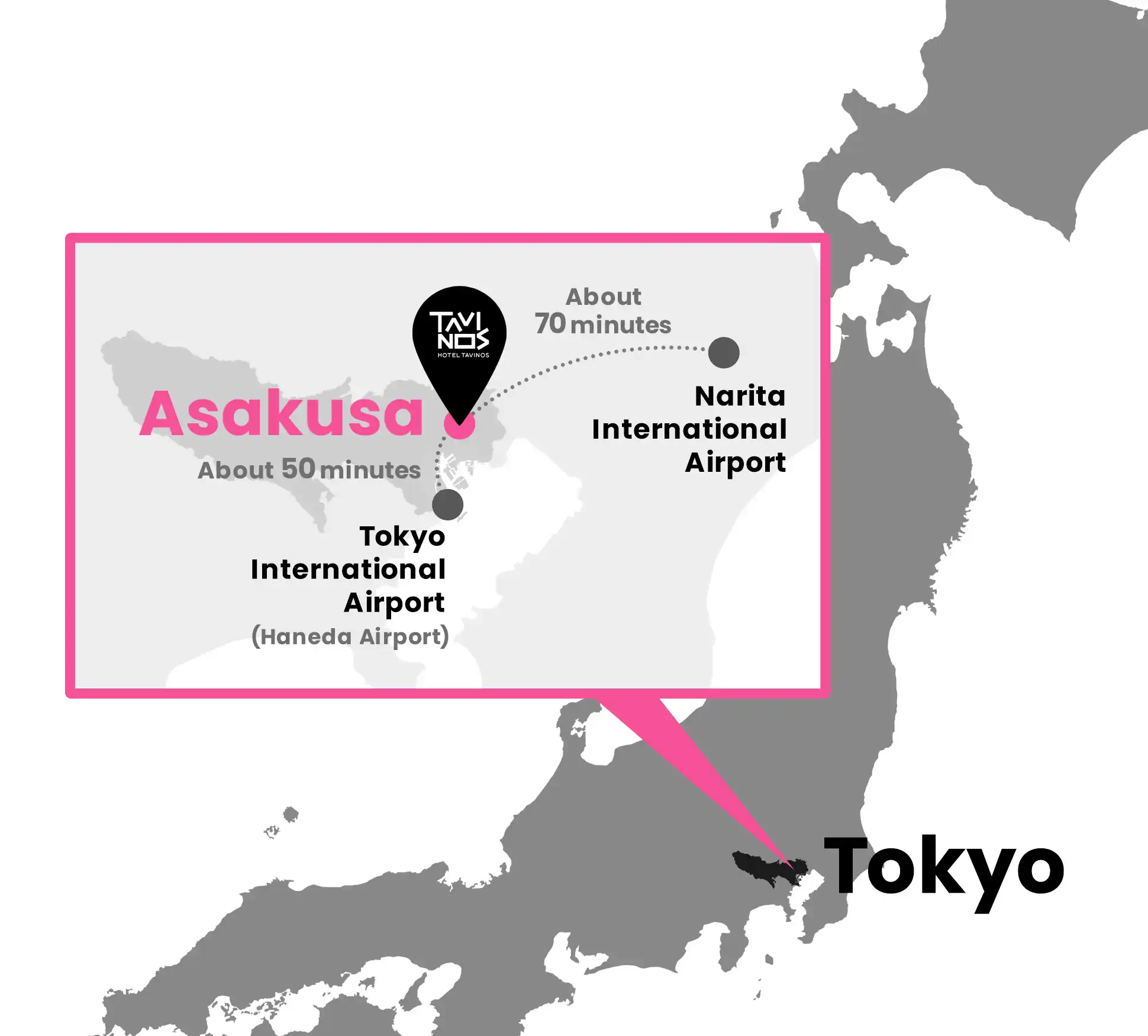 Asakusa is deeply beloved by tourists both Japanese and foreign. HOTEL TAVINOS Asakusa is within walking distance of the various Asakusa landmarks such as Kaminarimon, Sensoji Temple, and Hanayashiki, so it’s the perfect place to stay during your trip.