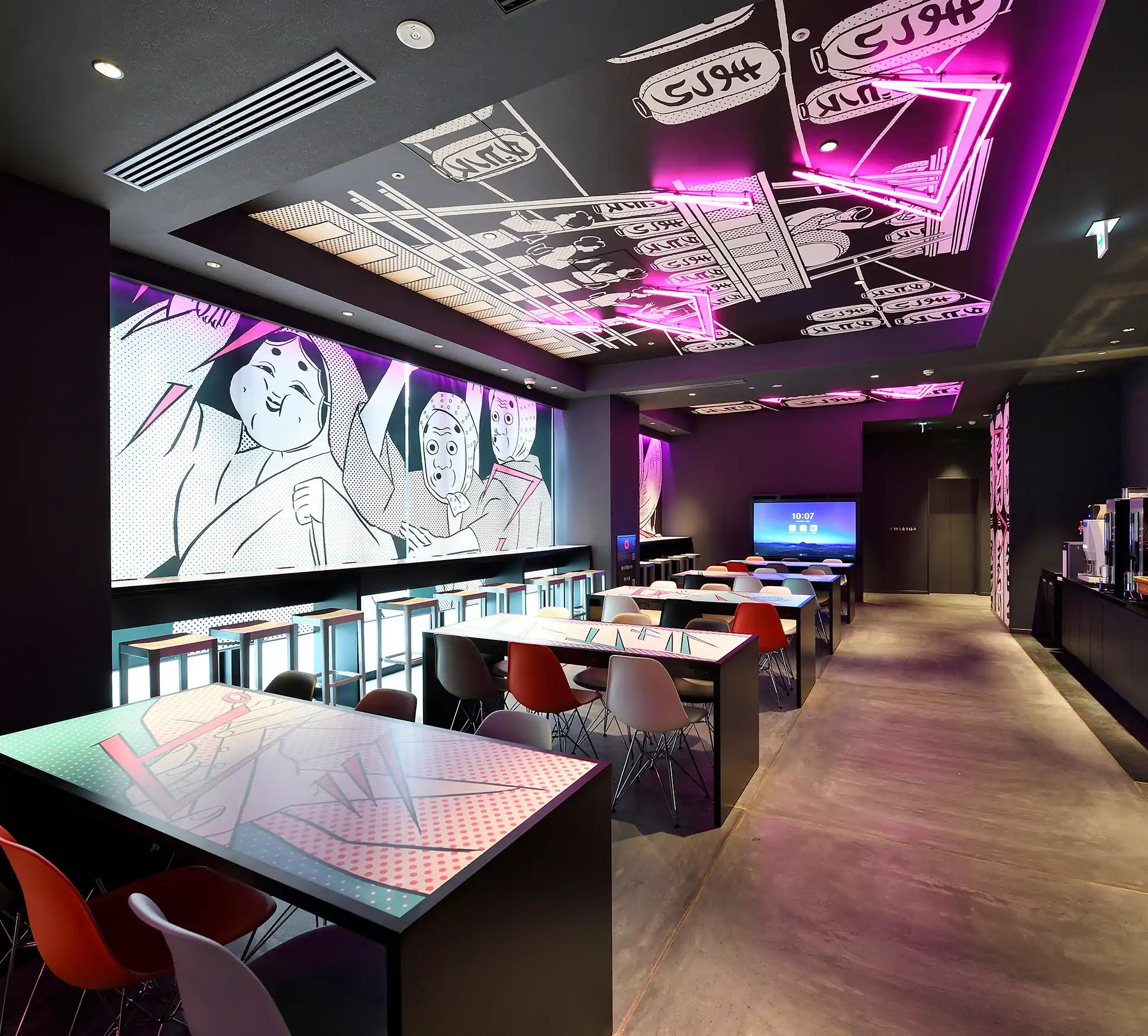 The design is inspired by manga, the artform that has come to symbolize Japanese culture. Our hotels boast top-of-the-line automatic check-in/check-out machines and a reservation system that allows you to designate your room. For a special hotel experience that fuses culture with technology, make it HOTEL TAVINOS!