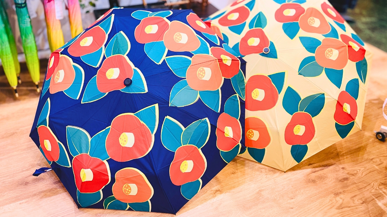 Beyond their stunning appearance, these umbrellas are impressively functional. Folding umbrellas from Hokusai Graphic are all-purpose and highly light-blocking, perfect for Japan’s intense summers. The designs range from elegant and understated patterns to playful and whimsical motifs—such as tsubaki (common camellia) or sumo wrestlers floating on inner tubes. Some blackout parasols even offer 99.9% UV shielding, keeping users cool under the scorching sun. Each design is an exclusive creation by Hokusai Graphic, making the hardest part of any visit deciding which one to take home.