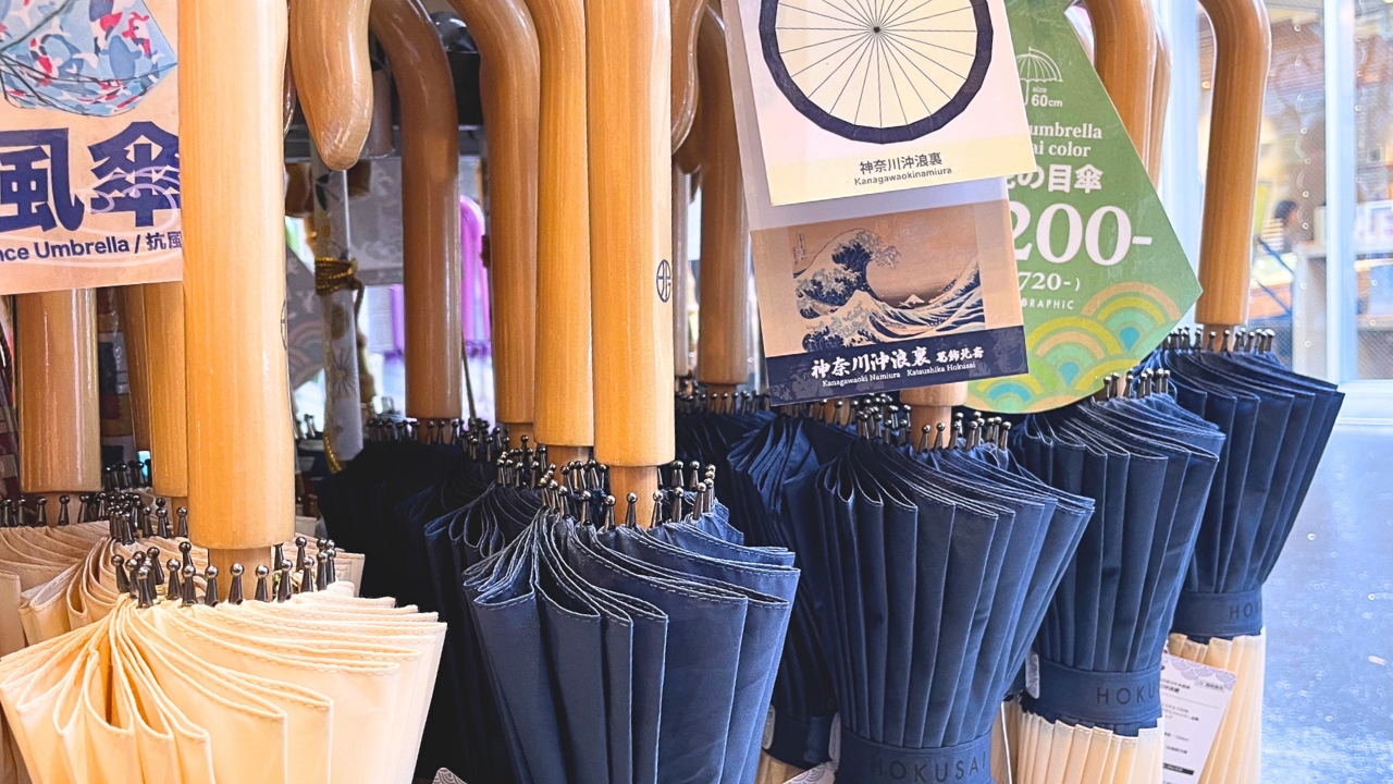 Umbrellas are often seen as purely functional items, chosen for practicality rather than design. While clear plastic umbrellas from convenience stores are a common sight in Japan, Hokusai Graphic, a brand specializing in Japanese umbrellas, offers a striking alternative with its “hybrid” umbrellas which seamlessly blend traditional craftsmanship with modern usability. These umbrellas aren’t just about staying dry—they’re a fusion of art and functionality, making them more than just a necessity on a rainy day. For those seeking a souvenir that is both artistic and practical, Hokusai Graphic is the ideal destination.