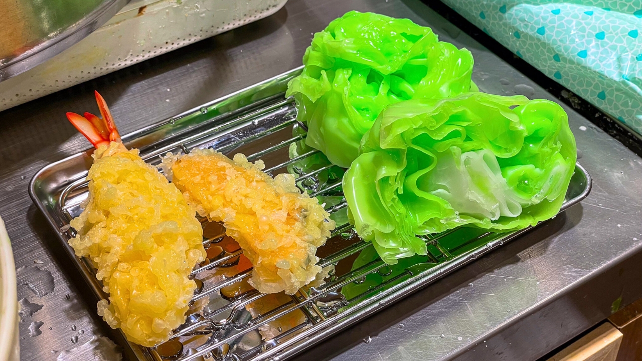 This is a great experience for families with children as it’s easy enough for kids to enjoy but surprisingly challenging for any adult invested in making the perfect samples. I tried my hand at it recently and made a tempura shrimp and a slice of pumpkin.