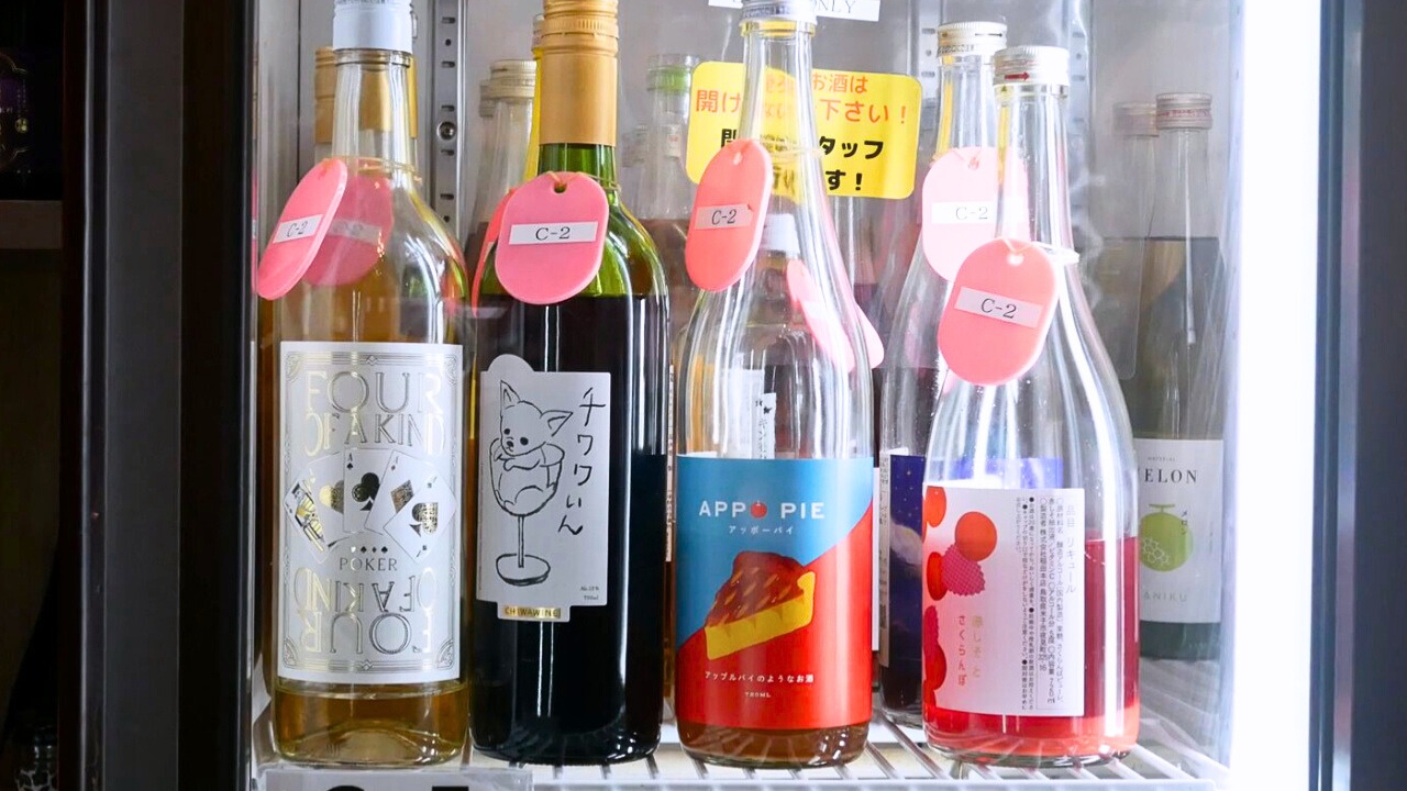 Guests are welcome to experiment by making their own cocktails—or even their own desserts. A standout combination is a scoop of vanilla ice cream (included in the main fee) with a generous pouring of Kuraka’s sake-based matcha liqueur from Nara Prefecture for a decadent affogato-style dessert. Other popular options include fruit beer, where you mix three parts beer to one part fruit wine, and original cocktails. There are recipes posted around the bar, so it’s easy to get inspired as you search for your next tipple.
