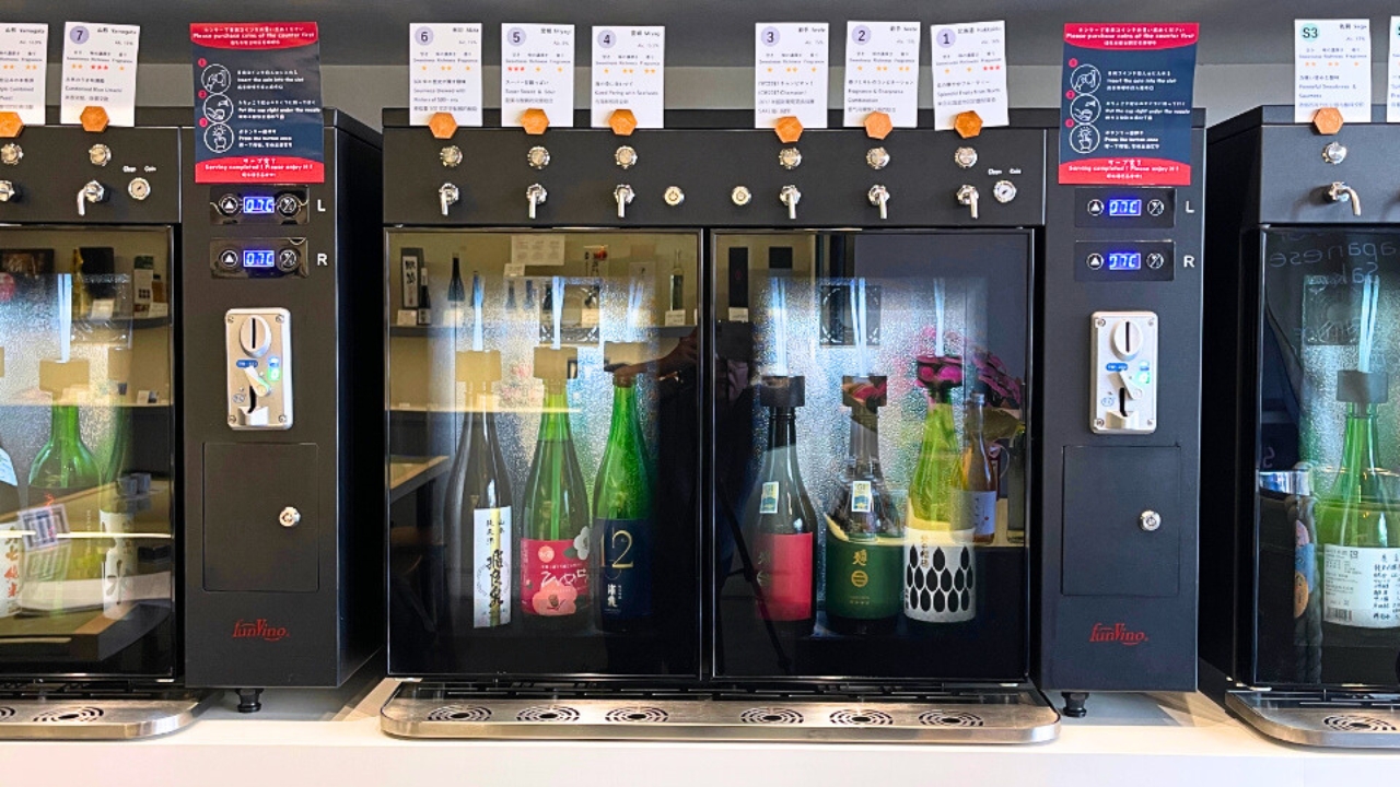 WASAKE follows a coin-operated token system—you purchase tokens (¥600 for 1, ¥3,400 for 6, ¥6,600 for 12 and ¥9,700 for 18) upon entry and use them to sample different sakes at the temperature-controlled self-service stations. Alternatively, you can opt for a guided tasting at the counter, where expert staff introduce different brewing regions, techniques, and flavor profiles.