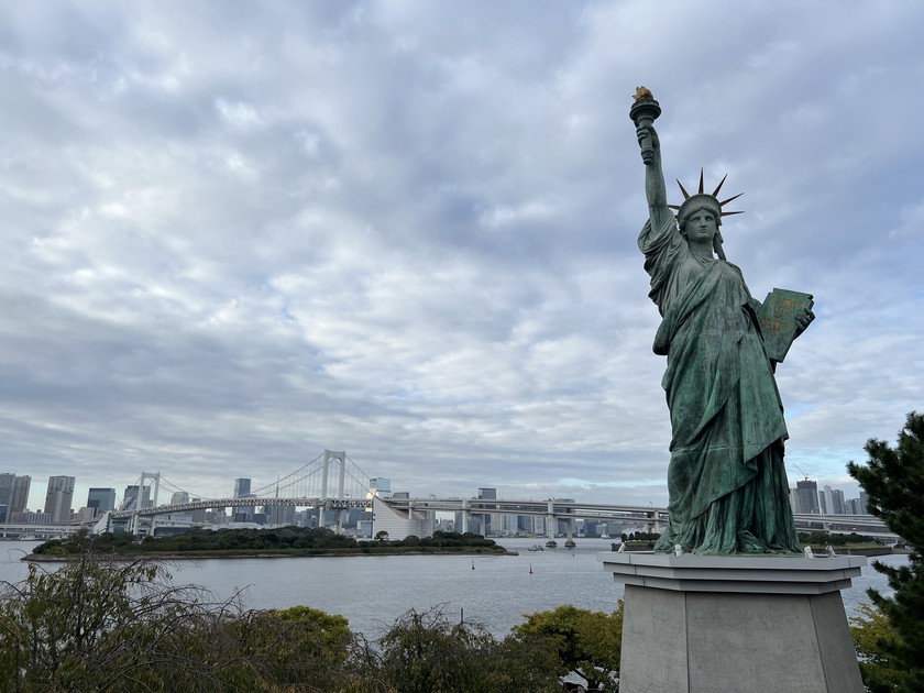 The next popular landmark is the replica of Statue of Liberty. There are actually several replicas in Japan, but this one is the most famous. And rightfully so! It has a stunning location with a view of Tokyo Bay and Rainbow Bridge in the background and just in a perfect spot to commemorate your Tokyo’ trip with a photo.