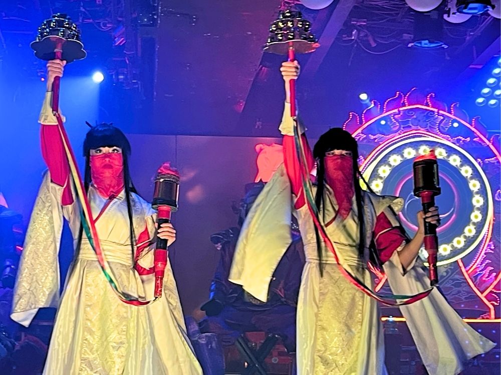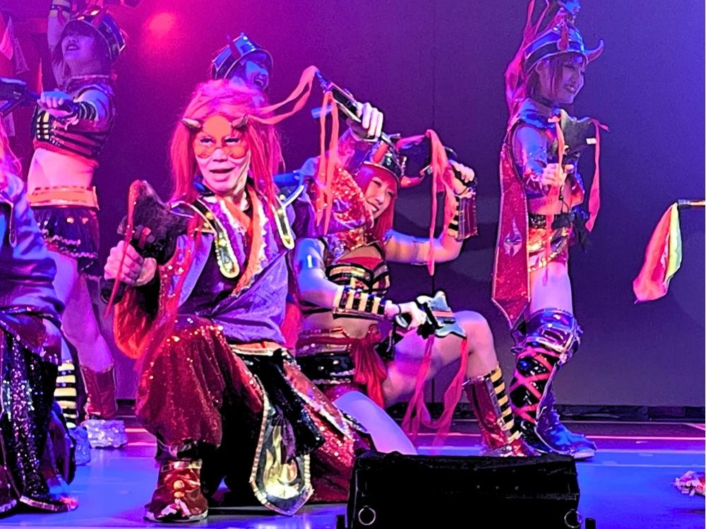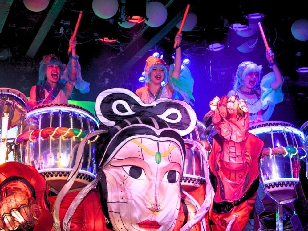 The show begins with a spirited kampai, or communal toast, where the audience is invited to raise their drinks and set the mood before the curtain rises. From there, the lights dim, the music swells, and the first act explodes onto the stage. Dancers, drummers, and costumed monsters fill the room, invoking Japanese yokai folklore in a riot of color and sound.