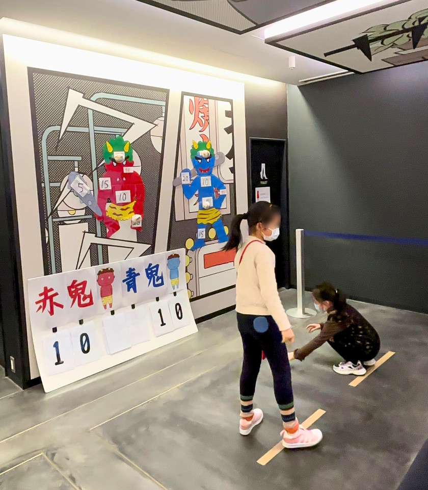 Two oni figures, as you can see on the photo above, have a point system, where each part of their body has different score. Of course, you can play this game by yourself, but if you in the mood, you can also compete on who can get the highest score with your friends or our attenders.