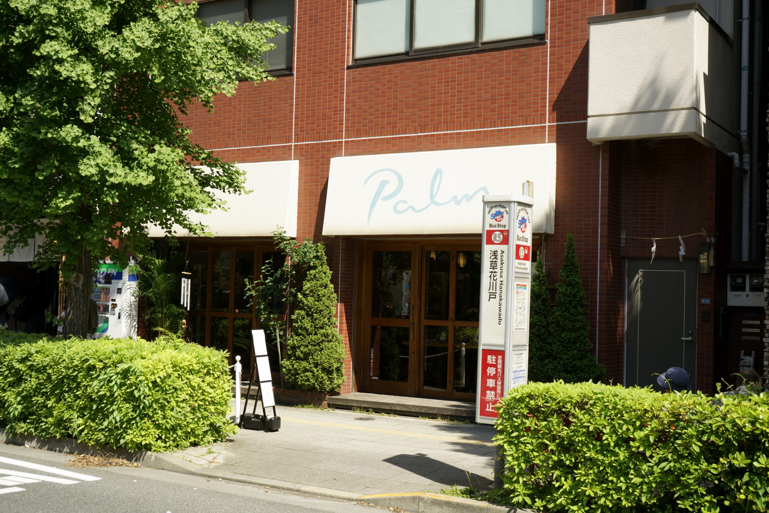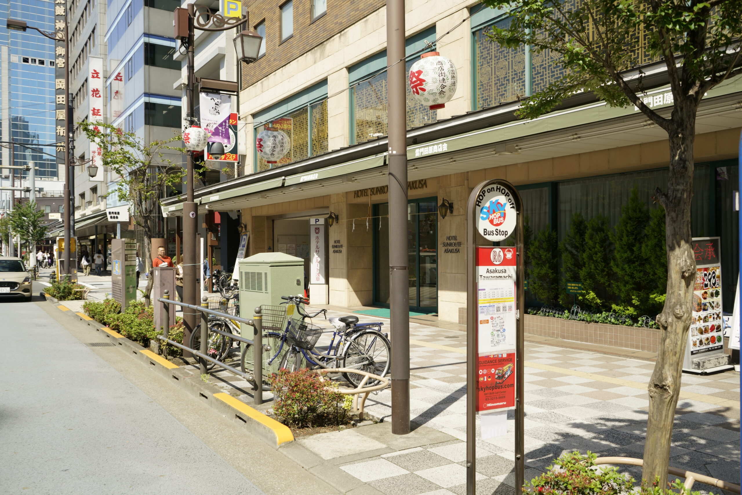 Sky Hop Bus stops are clearly marked throughout the city. The photo above shows the R6 Asakusa Tawaramachi stop on the Red Course.