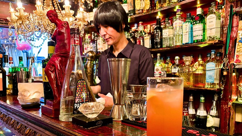 “We get customers from all over the world who are drawn to the unique retro vibe,” says Katsuro Miyauchi, manager of Albatross, a two-story, hole in the wall bar that stands out with its disco balls, chandeliers, statues, mounted deer heads and other eclectic décor. Miyauchi’s signature cocktail is the Shinjuku Bomber, a refreshing long glass of vodka, cassis, lychee, grapefruit and tonic. At Albatross, you’ll soon be making your own memories and forgetting all about the outside world.