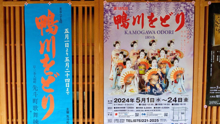 Pontocho is host to Kamogawa Odori , a traditional stage performance featuring music, theater, and dance by the geisha and maiko (young geisha in training) of Pontocho. It is the last of a series of annual spring performances that are held in Kyoto’s five geisha districts.