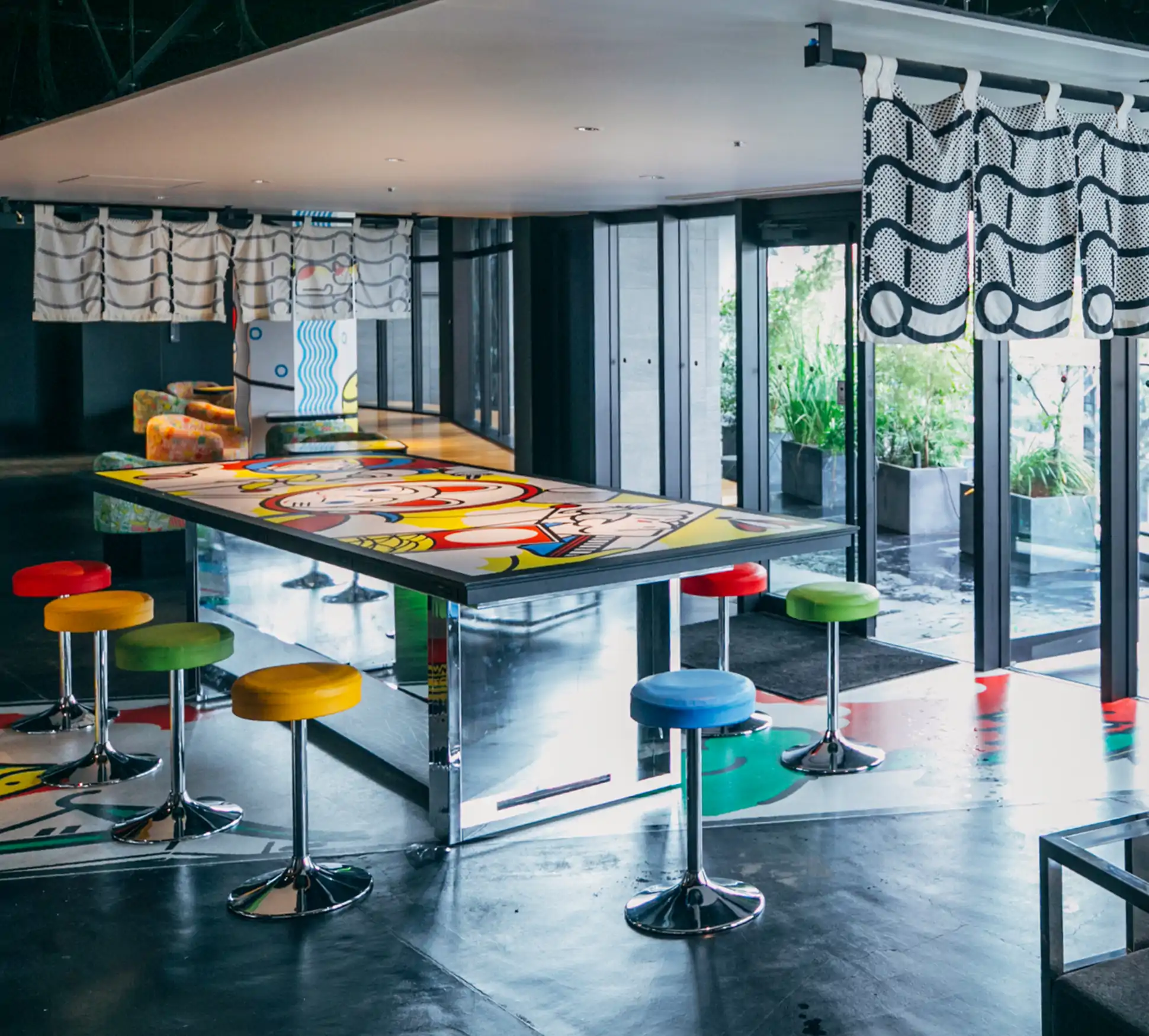 일본 문화를 상징하는 'MANGA(만화)'를 모티프로 한 공간 디자인.