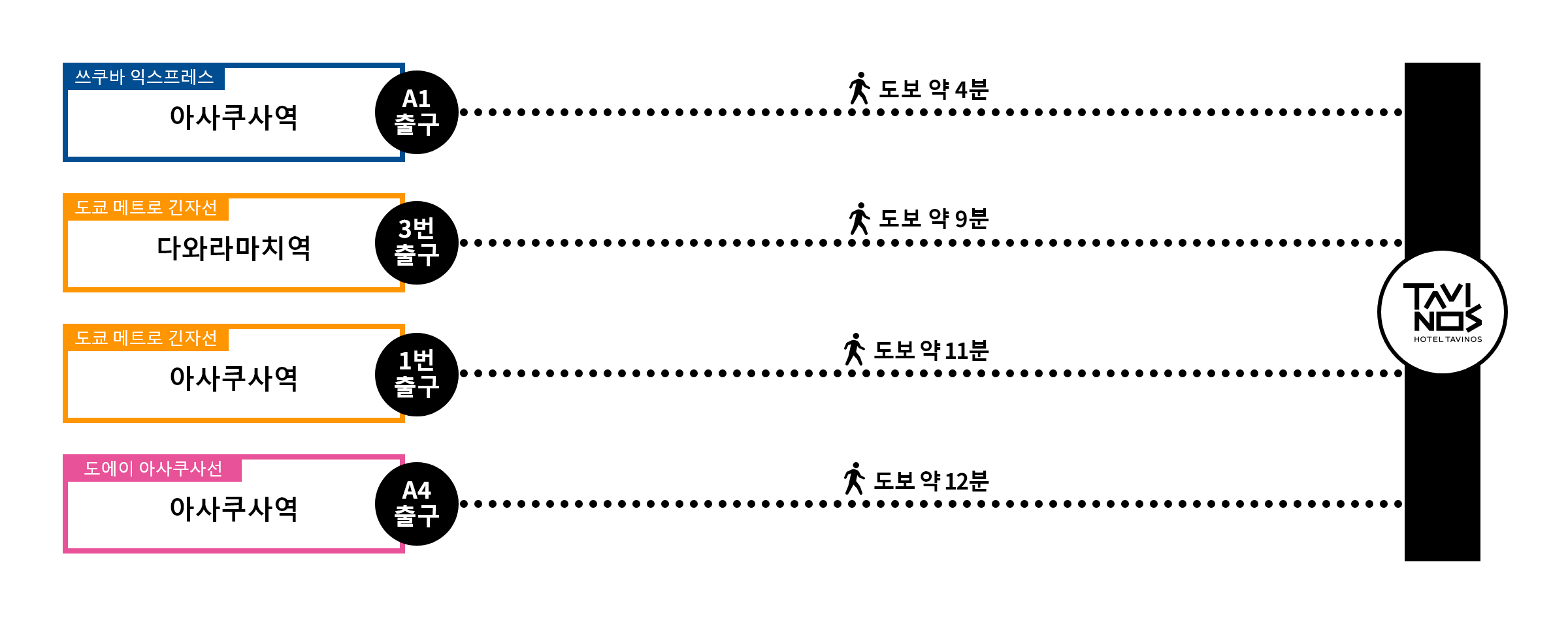 - 쓰쿠바 익스프레스 아사쿠사역(TX03) A1 출구에서 도보 약 4분