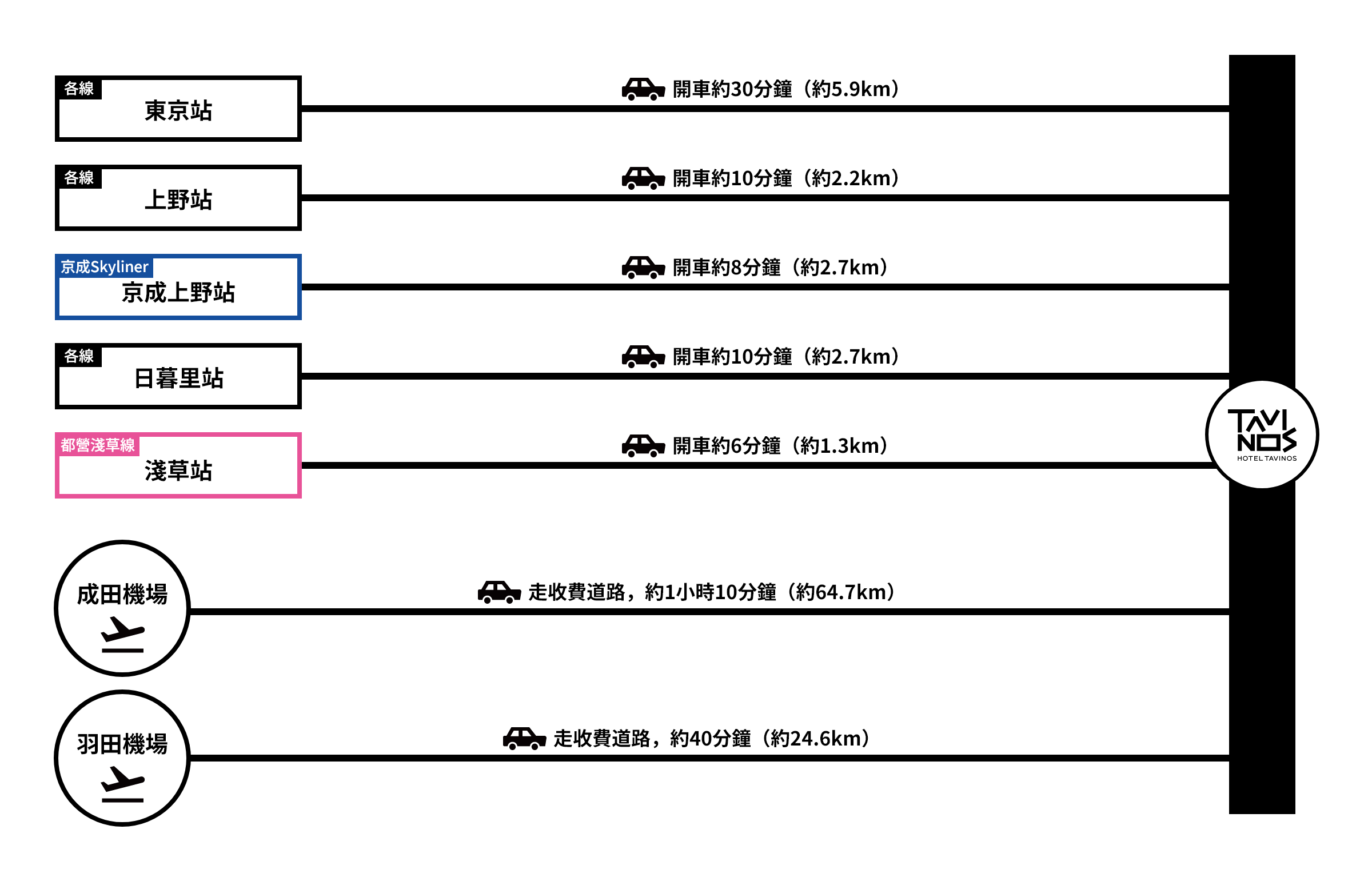 - 從東北・東海道新幹線東京站八重洲口,開車約30分鐘(約5.9km)